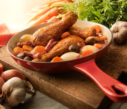 Kartoffelknödel mit Pilzen in Rotweinsauce