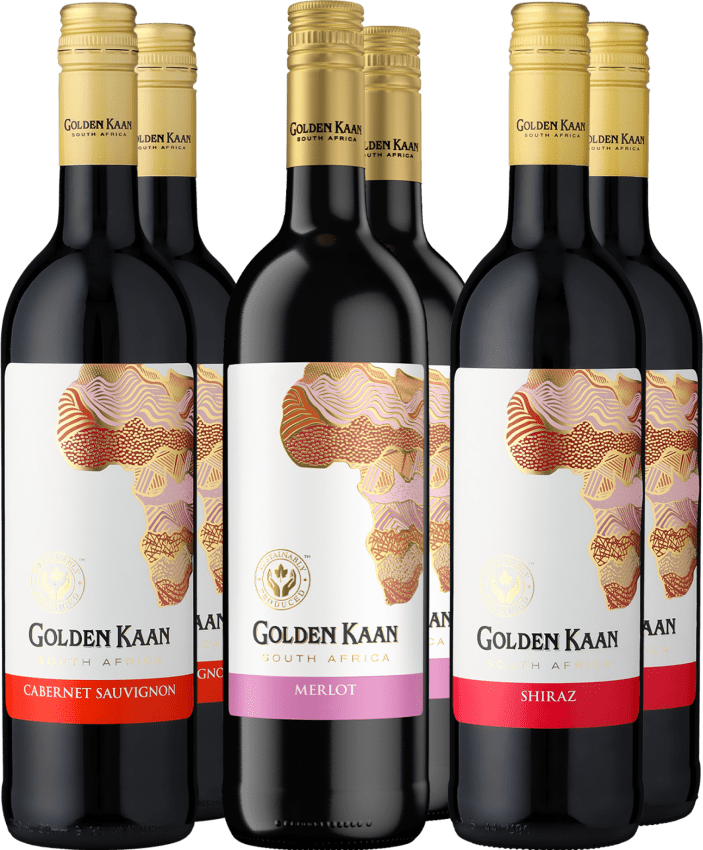 Sichern Sie sich je zwei Flaschen der drei Golden Kaan-Rotweine zum Top-Preis und genießen Sie die goldene Sonne Südafrikas!