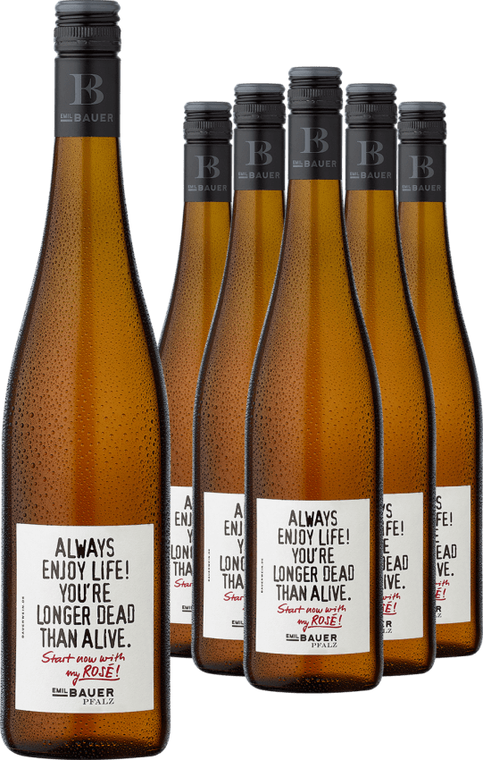 Das Leben genießen, so lange man es kann. Das ist auch das Motto des »Always enjoy life. You are longer dead than alive – start now with my Rosé« aus dem Weingut Emil Bauer. Ein Rosé ist immer der perfekte Begleiter. Nicht nur im Sommer lässt er sich mit Freunden perfekt auf der Terrasse genießen, auch im Winter verleiht der Rosé einem viele schöne Stunden.