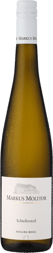 Der Markus Molitor Schiefersteil Riesling ist ein wunderbarer Riesling von den sonnenverwöhnten Steillagen der Mosel. Durch die extreme Steillage ist die Weinlese oft schwierig, dennoch wachsen hier die feinsten und spritzigsten Rieslinge der Welt. Die Trauben für den "Schiefersteil" werden vollreif Mitte November gelesen. Nur gesunde und vollreife Trauben kommen dabei in die Auslese und bilden so die besten Vorraussetzungen für einen Wein höchsten Niveaus. Molitors Schiefersteil Riesling besitzt eine feine Aromenkombination mit Noten von Quitte, vollreifen Äpfeln, Kamille und sogar etwas Lindenblüten. ist exzellent und angenehm beeindruckend. Der Wein ist harmonisch ausgewogen und im Abgang dicht und intensiv.