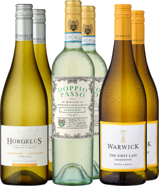 Der Horgelus Blanc aus der Gascogne überzeugt durch seine Unbeschwertheit und Frische. Sein Bukett von Blüten- und Zitrusaromen wird am Gaumen durch eine feine Säurestruktur untermalt. Ein Easy-Drinking Wein für jeden Tag. Stolze 96 Punkte verleiht Luca Maroni dem Doppio Passo Grillo. In Sizilien wird die fruchtig-frische Grillo-Traube angebaut. Der Weißwein überzeugt mit Aromen von Aprikose, Orange und Ananas. Ein Wein von dem man nicht genug bekommt. Abgeschlossen wird das Paket mit »The First Lady« Chardonnay vom Warwick Estate. Im Bukett zeigt er Aromen von frischen Pfirsichen und Honigmelone, am Gaumen ist er vielschichtig und reizvoll mit einem Hauch von tropischen Früchten. In dieser Frische und Konzentration zu einem derart vorteilhaften Preis ist dieser Wein nahezu einmalig in Südafrika.