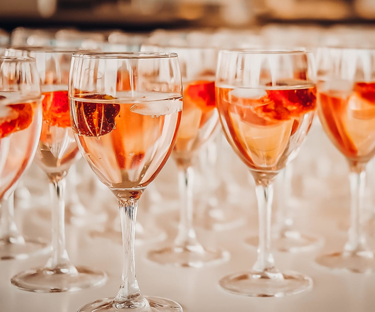 Austern, Kaviar, Sushi, leichte Vorspeisen, Desserts (z. B. Erdbeeren, Macarons) |